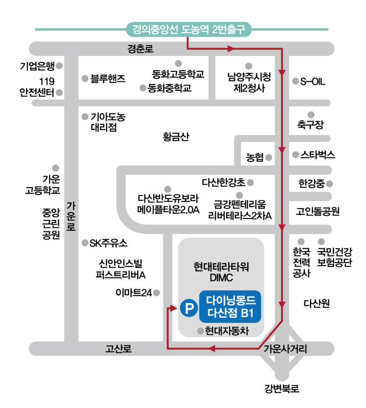 도농역 경의 중앙선 2번 출구 차량 5분 거리