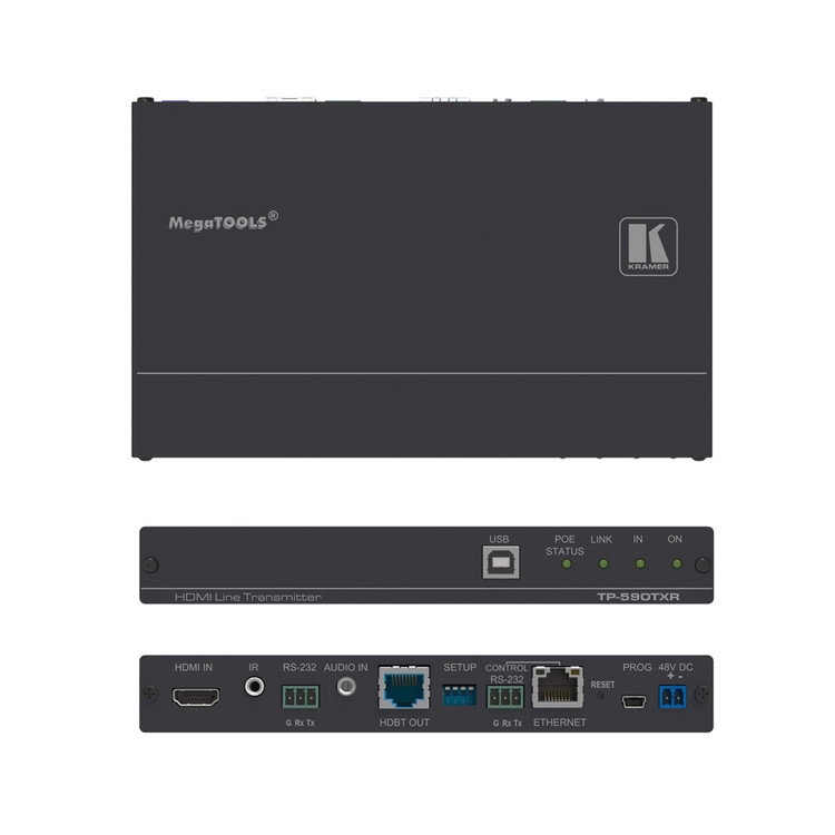 4K60 4:2:0 HDMI PoE 송신기, USB, 이더넷, RS-232, IR 및 스테레오 오디오 임베딩 포함, 장거리 HDBaseT 2.0 지원