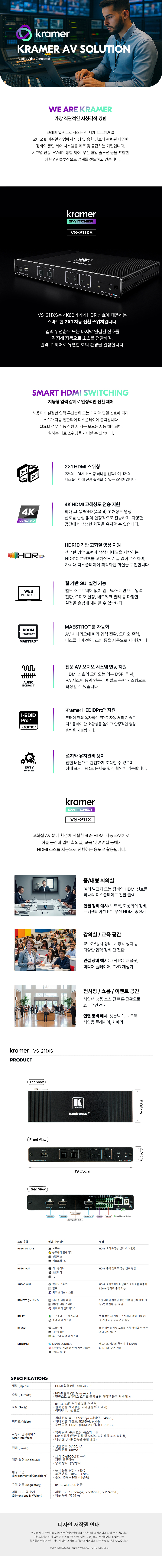 2x1 4K HDR HDMI 자동 스위처