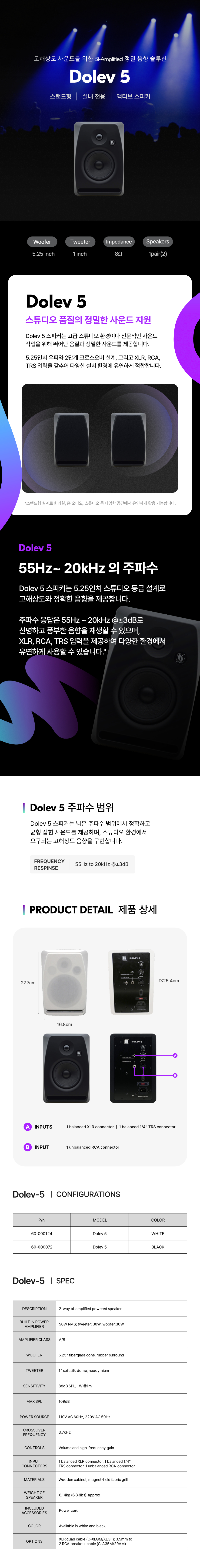 5인치, 2방향 바이앰프 스튜디오 등급 전원(Active)스피커