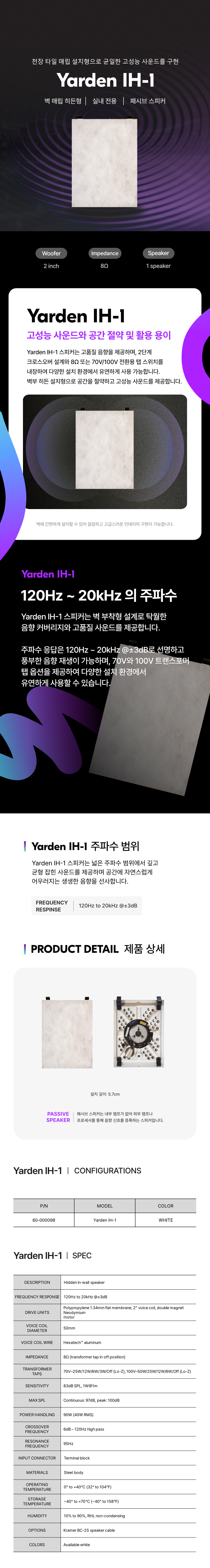 - 히든 스피커 -페인트가 가능하며 벽면 위로 2mm 미만으로 돌출됨