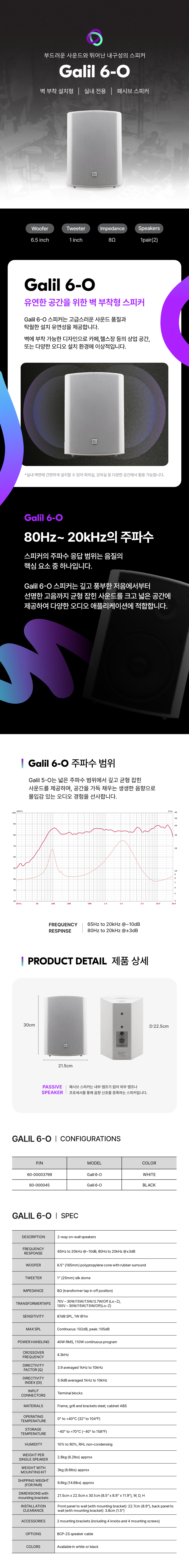 6.5인치, 2방향 벽 부착 수동(Passive) 스피커